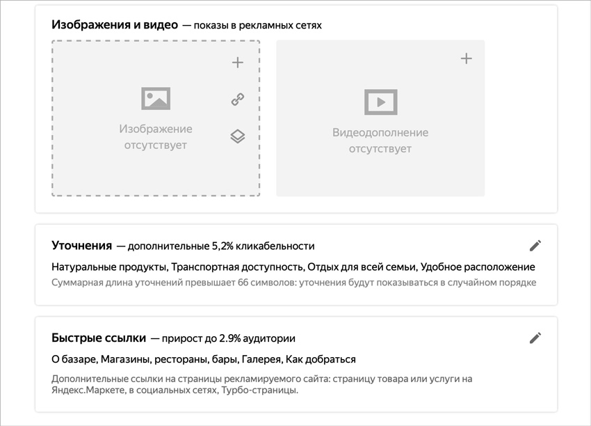 Теперь рядом с каждым пунктом есть подсказка о том, насколько каждый элемент может, например, увеличить кликабельность объявления или дать дополнительный прирост аудитории. Советуем вам заполнять все поля — чем подробнее и точнее объявление рассказывает о вашем предложении, тем больше вероятность, что оно заинтересует пользователя.