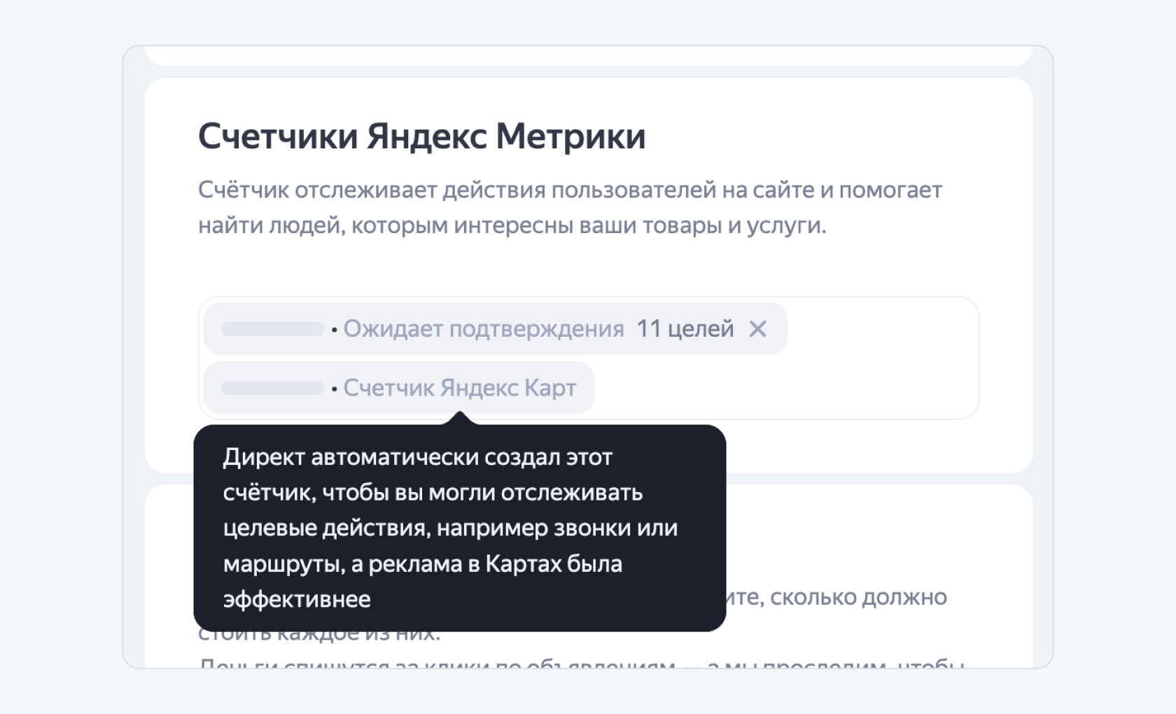3. Директ добавит специальный счётчик и цели для рекламируемой организации.