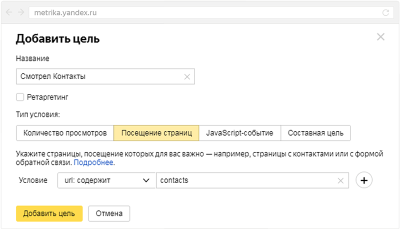 Все эти действия указали как целевые в бесплатном сервисе веб-аналитики Яндекс.Метрика.