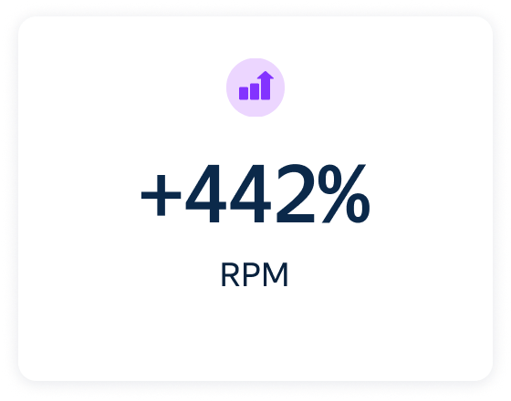 Несмотря на снижение СPMV, выросли остальные метрики. Значительно увеличилось число подборов рекламы (Fill rate), что привело к росту количества показов, за которые площадка получает вознаграждение. Рекламное место стало монетизироваться более эффективно и доход с него увеличился на 442%. Поскольку показатель CPMV не отражает комплексного изменения в доходе, при анализе эффективности монетизации мы рекомендуем ориентироваться на вознаграждение и RPM.