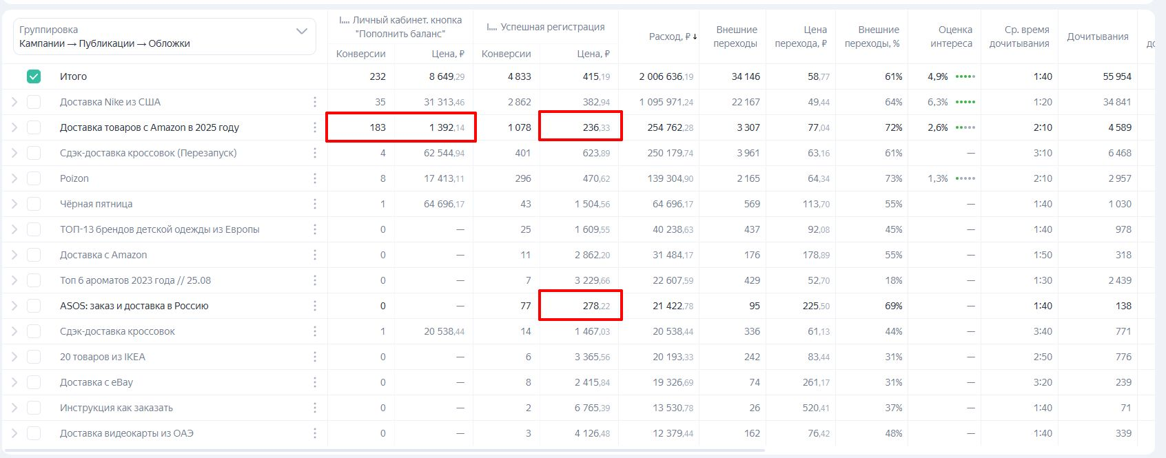 Третий формат оказался самым эффективным. Когда коммуникация строилась вокруг общего рассказа о сервисе или давала слишком универсальную инструкцию по заказам из-за рубежа, стоимость регистрации заметно росла.