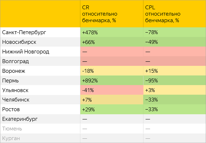 В Екатеринбурге, Тюмени и Кургане кампанию запустили позже, для выводов не накопилось достаточно статистики. Эксперимент продолжается.