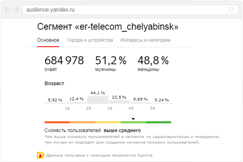Получили 12 готовых сегментов Аудиторий со средней и выше среднего схожестью.