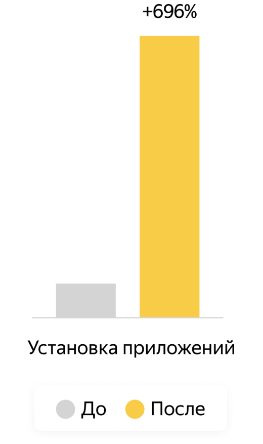 После подключения автотаргетинга весной 2021 года количество установок по сравнению с предыдущим высоким сезоном увеличилось в 8 раз или на 696%, коэффициент конверсии (CR) вырос на +45%.