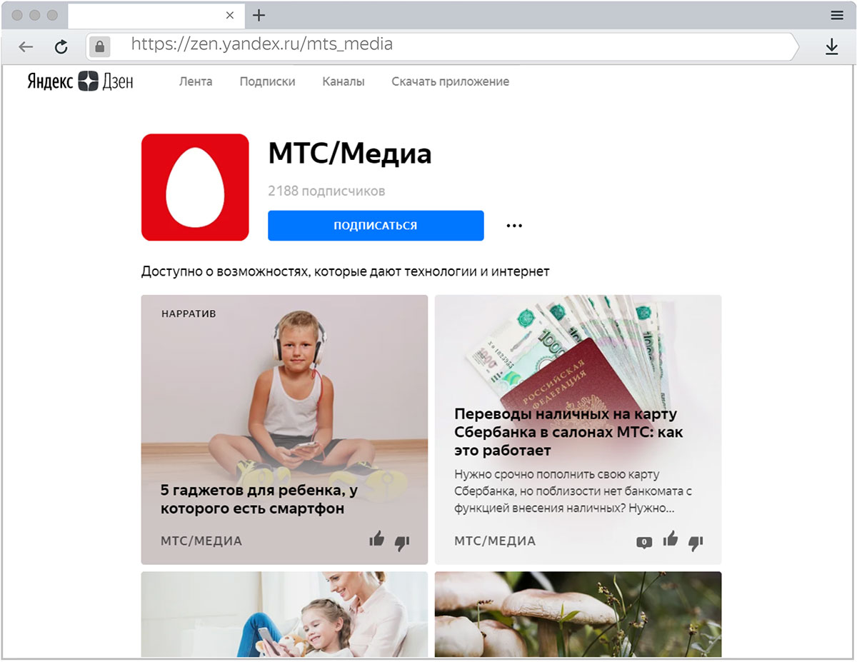 Шаг 1. Использовали канал МТС/Медиа в Дзене