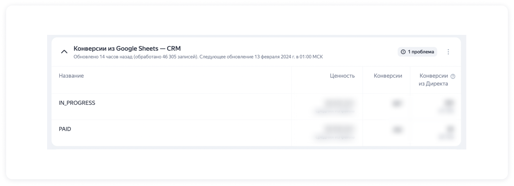 Настроили передачу данных через Центр конверсий Директа в Метрику и оптимизацию рекламы по офлайн-целям