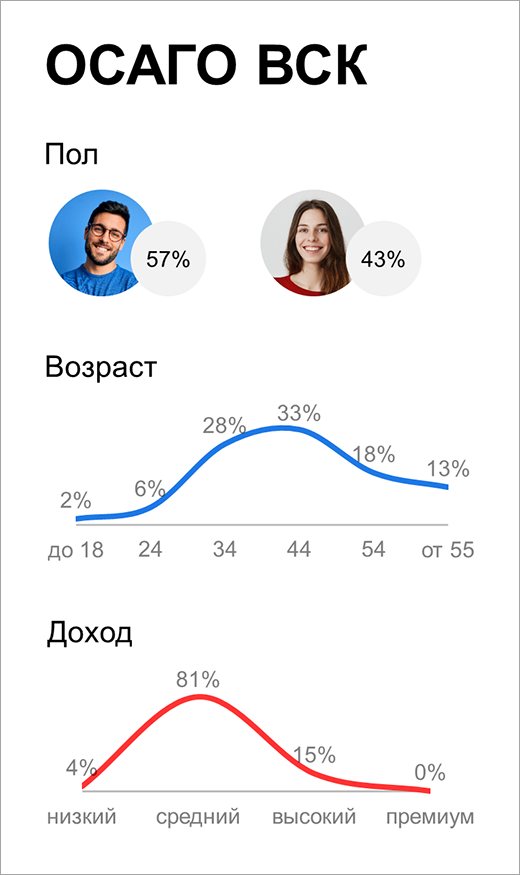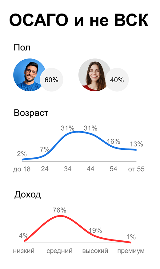 Получили много интересных фактов, которые отличают аудиторию ВСК от аудитории ОСАГО в целом. Например, выяснили, что: