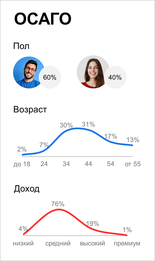 Специфика эффективного продвижения продукта — в точном таргетировании рекламы на пользователей, которым нужно оформить полис ОСАГО в ближайшее время.