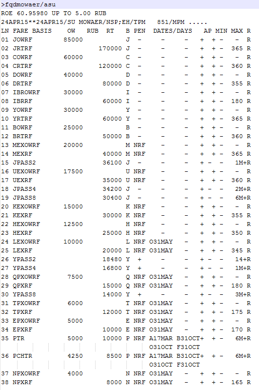 VALID FOR TRAVEL COMMENCING ON/AFTER 20APR 15 AND ON/