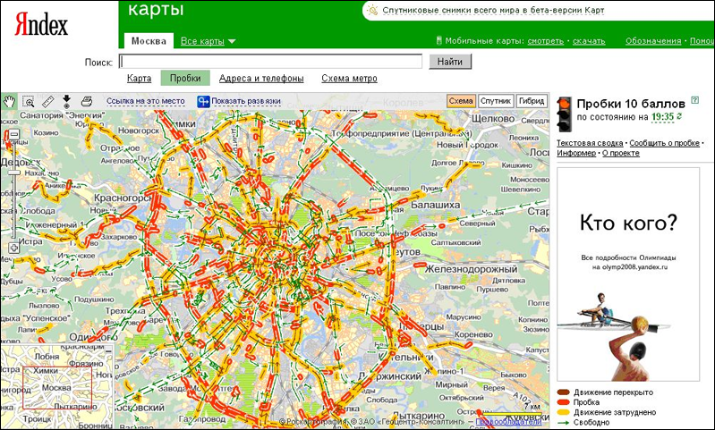 Стоило нам опубликовать наше исследование о пробках, как в Москве случился транспортный коллапс (третий за год и первый за лето). Вчера с 19 часов и до позднего вечера Яндекс.Пробки сообщали пользователям о десятибалльной загруженности дорог, при которой, как известно, «лучше ехать на метро».