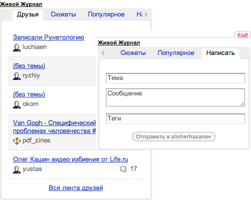Кроме публикации собственных постов, виджет поможет быстро узнать все самое новое и интересное – свежие записи в ленте друзей, популярные записи всего ЖЖ, новости с сайта LiveJournal.ru