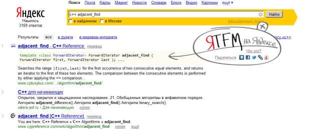 У любого программиста по пятьдесят раз на дню возникает задача «сходить в документацию и посмотреть параметры функции». Хорошо, если данную задачу успешно решает IDE, но это не всегда так, и поэтому существует большой поток «программистских» запросов к поиску. Мы решили сэкономить программистам время на поиск в документации, и показывать интересующий их ответ прямо в поисковой выдаче ― в специальном колдунщике. Это официальная версия, которую мы сказали руководству. На самом деле, мы – сами программисты, и сделали колдунщик, чтобы нам было проще работать. Не цитируйте этот пост в блогах, а то нас «попалят» :)