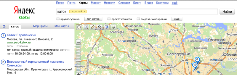 Специально к новогодним праздникам мы усовершенствовали поиск в развлекательных рубриках: теперь на Яндекс.Картах можно искать бассейны, катки, фитнес-центры, боулинги, кинотеатры, ночные клубы и развлекательные центры с учётом важных критериев и свойств мест. Предположим, вам нужен 3d кинотеатр с парковкой и vip-зоной или открытый каток с прокатом и заточкой коньков – Яндекс.Карты предложат вам подходящие места. Вводить весь запрос вручную не обязательно: просто наберите «кинотеатр» или «каток» и на сервисе появятся специальные фильтры.