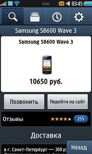 Маркет для bada позволяет узнать о характеристиках товара, сравнить цены в различных магазинах и почитать отзывы покупателей. Для этого достаточно сфотографировать штрихкод или ввести первые буквы названия товара в строке поиска – подсказки помогут быстро перейти к нужной модели.
