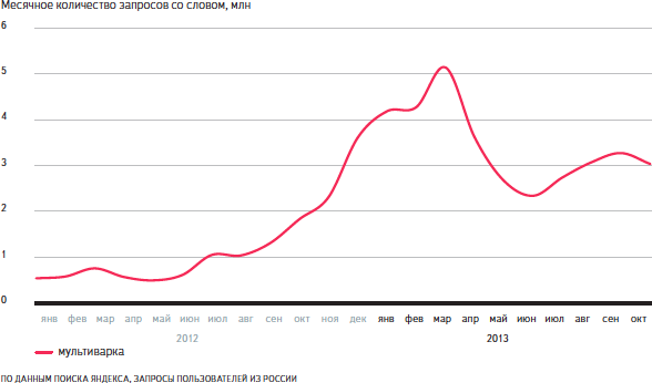 Другие сервисы и приложения, названия которых всё чаще ищут в поиске: онлайн-редактор фотографий Аватан, мобильные интернет-мессенджеры WhatsApp и Viber, музыкальные онлайн-открытки Плейкаст. Пожалуй, единственное популярное новое слово, обозначающее предмет не из виртуальной реальности, — это мультиварка. Появилось оно относительно давно, но настоящую популярность начало набирать в конце прошлого — начале этого года.
