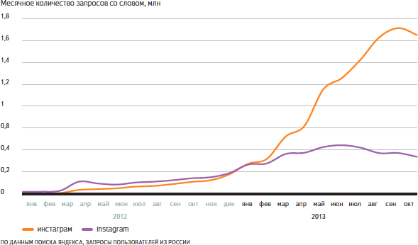 Ещё одно знаковое слово из интернет-реальности 2013 года — Инстаграм. В этом году русское название этого сервиса окончательно победило английское.