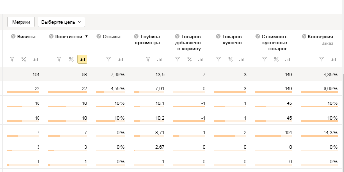Также подобная ситуация может иметь место, если просматривать статиситку за 1 день. Например, посетитель зашел на сайт в субботу, положил товары в корзину, но заказ не оформил. В воскресенье этот же посетитель продолжил оформление заказа, но уже решил отказаться от некоторых товаров и удалил их из корзины. При просмотре статистики за воскресенье для удаленных из корзины товаров будет показываться "-1" в статистике.