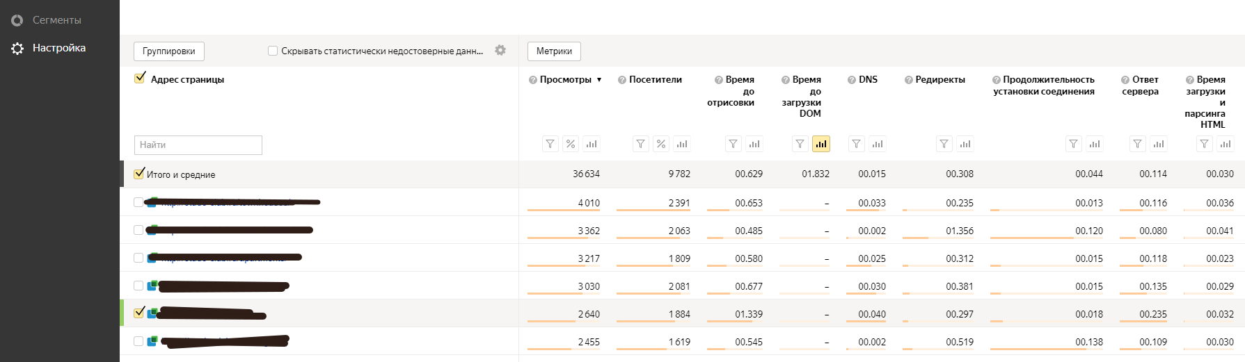 У показателя «время до загрузки DOM» стоят прочерки. Кто-нибудь знает, в чём может быть причина?