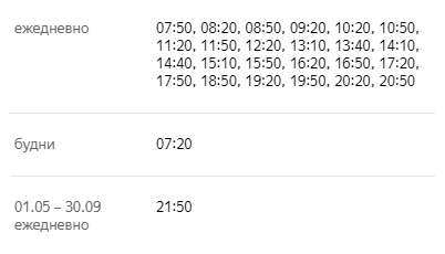 будни 5.00, 5.30, 19.30, 20.00, 20.30