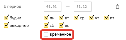 5. В атрибутах расписания появилась опция «временное» — просим не использовать ее сейчас. Об особенностях ее работы и сфере применения мы расскажем позднее отдельным постом.