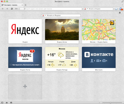 - при необходимости верните на верхнюю панель дополнительную поисковую строку, кнопку Домой