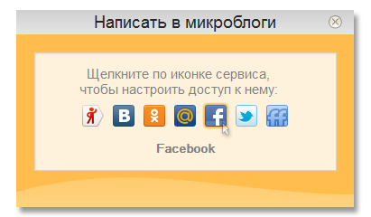 В Библиотеке виджетов уже есть кнопки сервисов ВКонтакте, Я.Ру, FaceBook и Мой Мир. Они позволяют только получать уведомления о событиях в социальных сетях. Теперь при помощи Яндекс.Бара вы сможете еще и отправлять свои сообщения.
