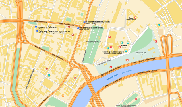 А на этом масштабе карты у станций метро появились подписи. Нам удалось сделать это так, чтобы не перегрузить картинку.