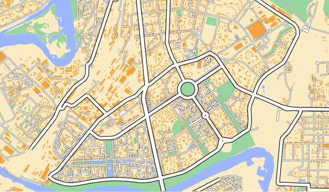 Слой дорог — 1 стиль, категории отображения не отличаются. Совсем невозможно разобраться и понять структуру города.