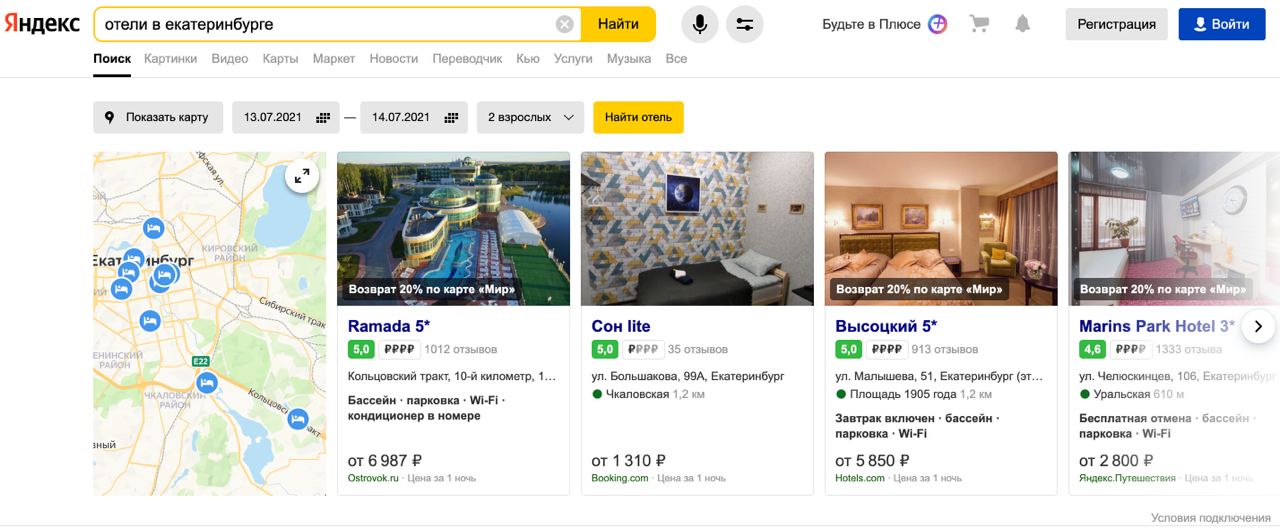 Интернет, 12 июля 2021 года. Яндекс добавил в поиск универсальные обогащённые ответы. Их универсальность в том, что они позволяют в одном блоке увидеть информацию с разных сайтов и перейти к любому из них в один клик. Такие ответы появляются, например, по запросам про фильмы, отели и авиабилеты.