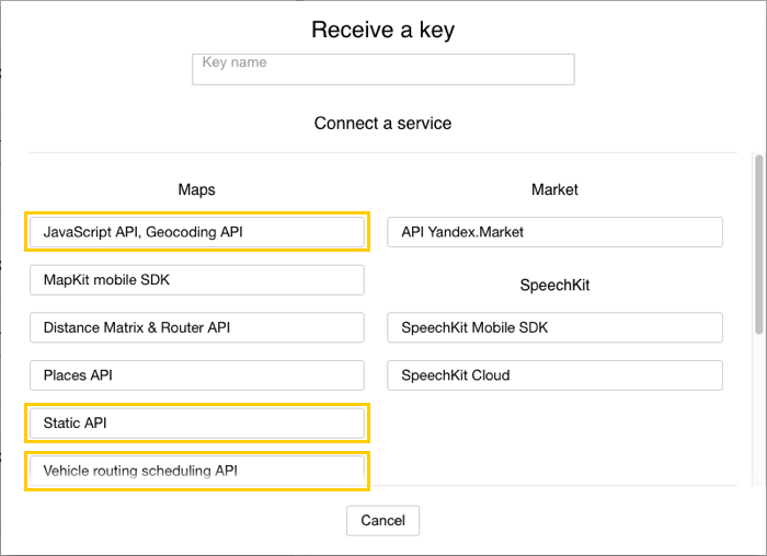 Purchasing the «Places API» and «Static API»