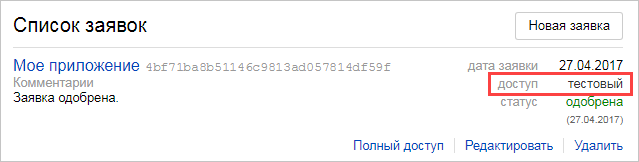 Applications for which you have requested access to the Yandex Direct API are in the My requests tab on the API settings page.