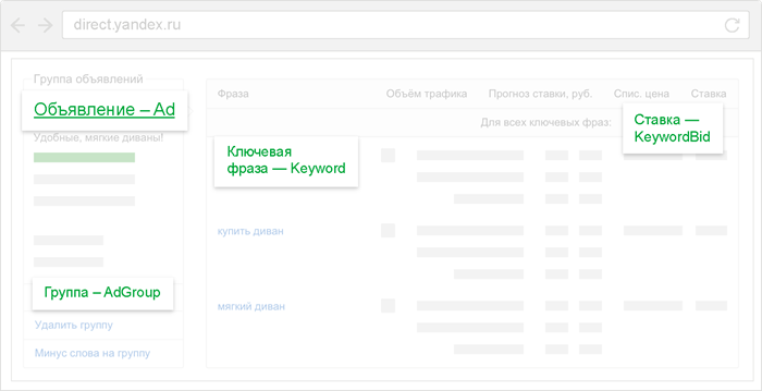 Теперь у вас есть аккаунт в Директе. Давайте посмотрим, как выглядят ваши рекламно-информационные материалы в веб-интерфейсе и в API.
