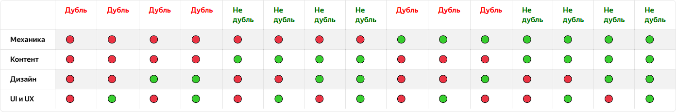 Если игра полностью идентична, но отличие только в механике, и сами по себе механики не создают ощущения абсолютно нового игрового опыта (кликер, пазлы, слияние-падающих, чат, тест и т. д.) — это не считается достаточным различием.