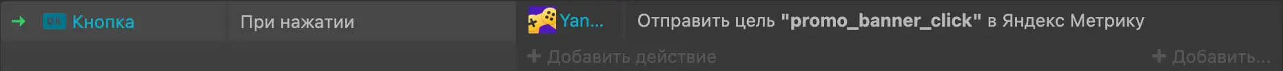 Чтобы отправить в Яндекс Метрику цель, используйте действие Отправить цель. Оно принимает следующие параметры: