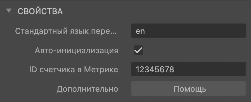 Чтобы отслеживать метрики и цели в Яндекс Метрике, укажите ID счетчика в свойствах плагина: