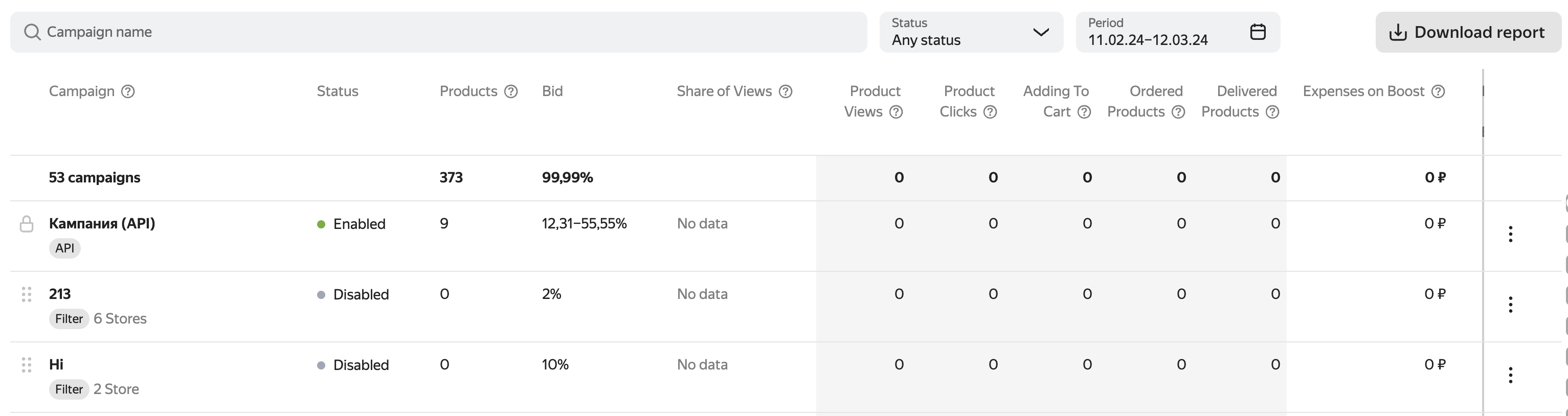 该请求始终适用于通过API创建的相同广告系列。 如果您在您的帐户中删除它,市场将创建一个新的下一次您提出请求。 您将无法通过API管理其他活动。 通过API创建的广告系列始终具有高于其他广告系列的最高优先级。 — 它不能改变。