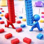 Ваша задача - собрать блоки больше чем остальные, накапливая их. Нужно накопить на создание транспорта, чтобы добраться до финиша раньше соперников. Будьте осторожны - если соперники набрали в руки больше блоков, чем у вас - они могут сбить вас с ног. Тем самым вы оброните все свои блоки.