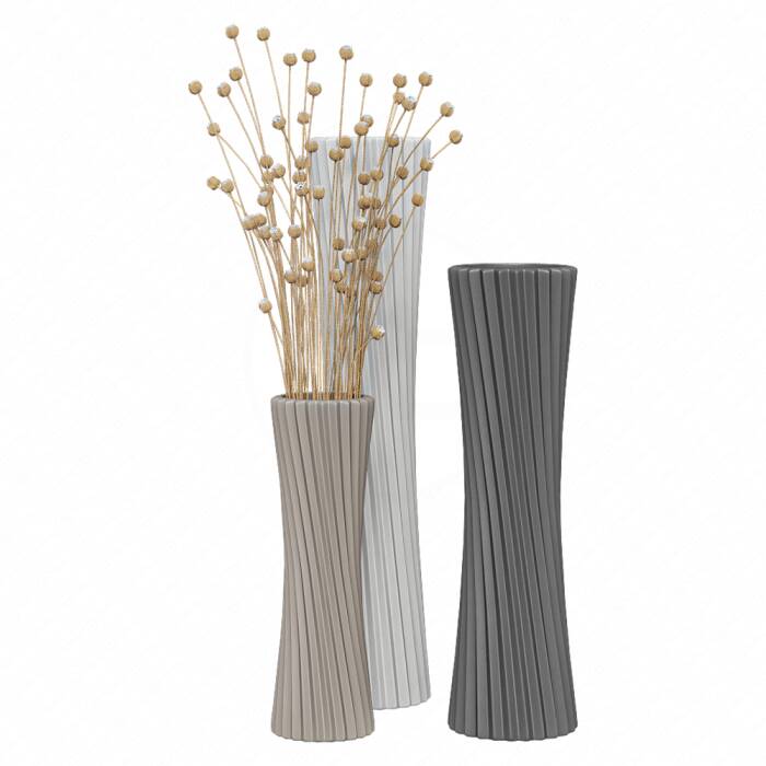 Set of three 4" x 24" New Traditional ceramic vase, 100% made of earthenware black, white and gray vases with twisted body design with ribbed exteriors, glazed finish