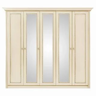 Шкаф 5-дверный с зеркалами Classico Italiano Палермо белый/ваниль T-755Д