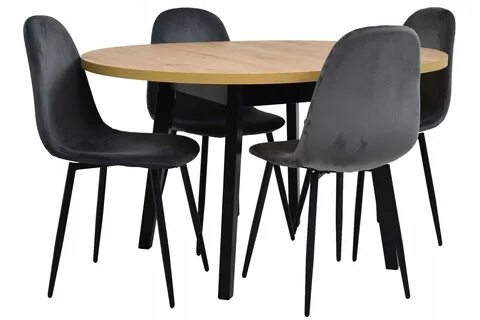 Stół okrągły 100/130 cm + 4 krzesła welurowe (OL-3L + IK-04) * Cena, Opinie * Stoły i krzesła zestawy 12254860953 * Allegro