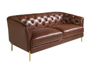 Диван 2-х местный 6139/KF106-2P-M1595 кожаный с золотистыми стальными ножками