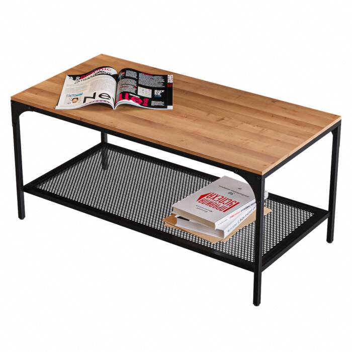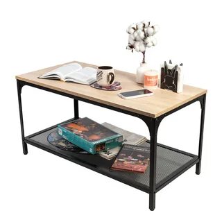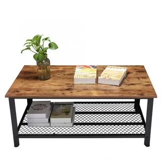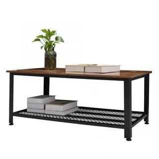 Небольшой коричневый прямоугольник дерево и металлический журнальный столик с полкой для хранения для небольших гостиных