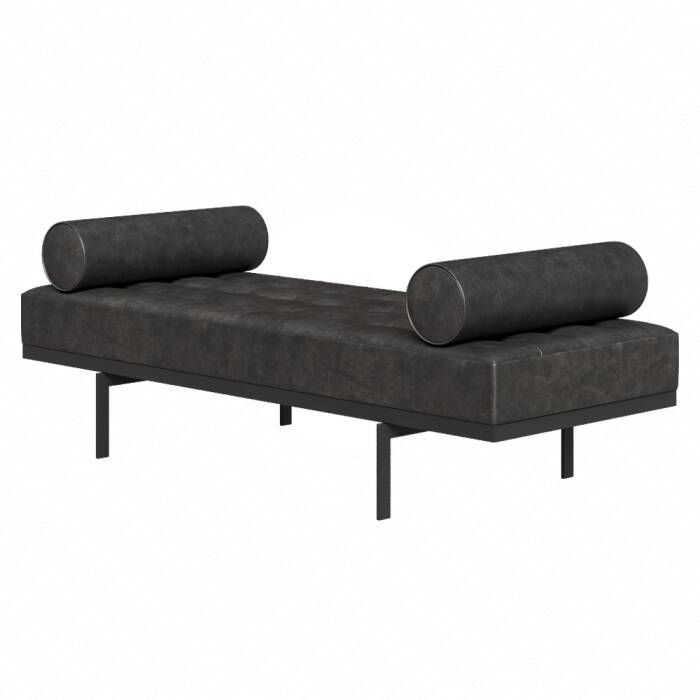 Contemporary Goddard Bench in Gray Leather with Steel Legs Sofa material, Furniture, Modern daybed