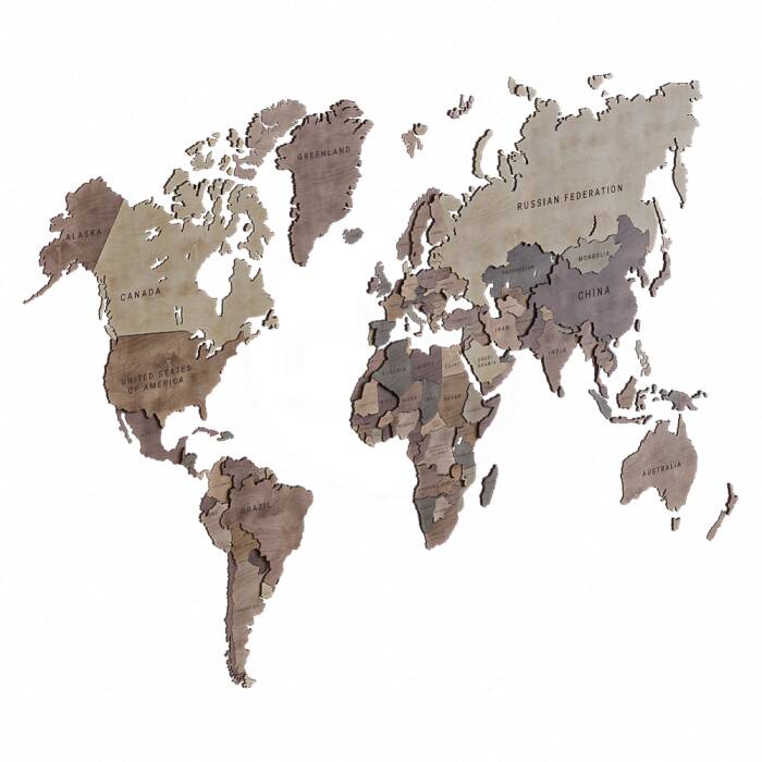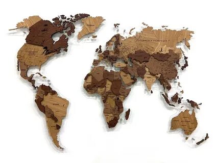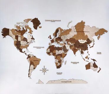Карта мира из массива дуба в проекции Каврайского (многоуровневая) | Купить от Крафт-Бюро Анны Афанасьевой