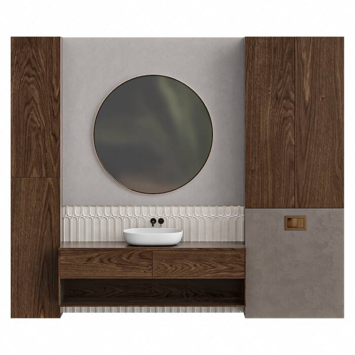 3ddd.ruДоступна для скачивания, Платформа: 3dsMax 2014 + obj, Рендер: Vray+Corona, Форма: Прямоугольник, Стиль: Современный, Материалы: Дерево, Камень, Цвета: Коричневый. раковина, смеситель, инсталяция, зеркало, шкаф, Bathroom furniture set 11, BathroomBathroom furniture set 11 Набор мебели для сан-уз ...