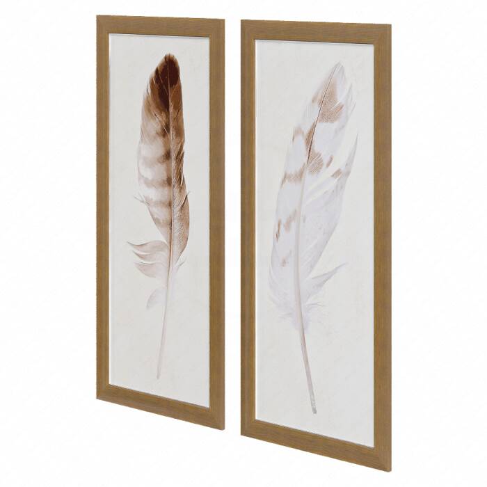 אמנות לקיר הבית אמנות ציור נוצות ממוסגרות סט של 2, ניטרלי (112070)