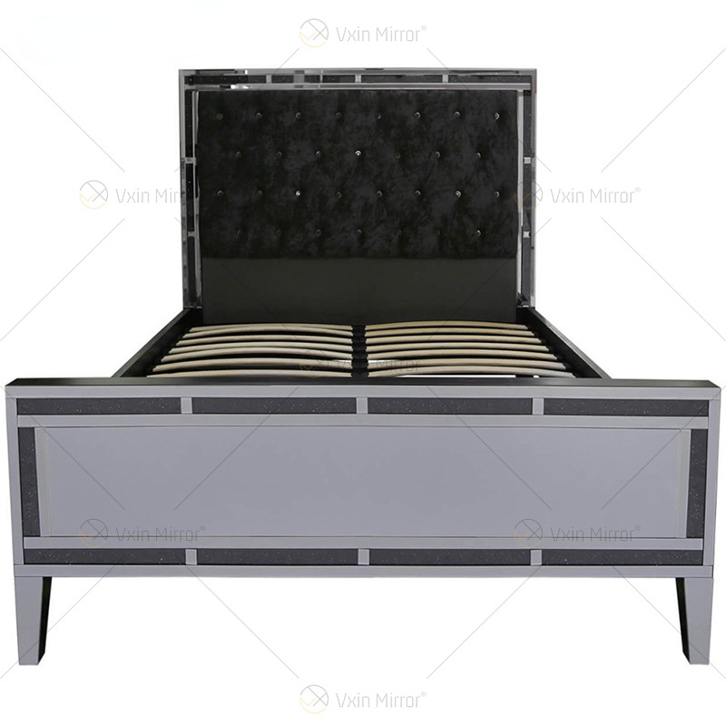 Копченая зеркальная двуспальная кровать, панель для спальни, черная Алмазная декоративная кромка, двойная кровать, стеклянная пл