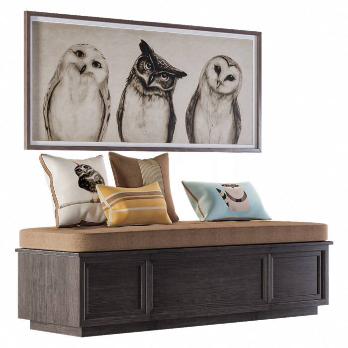 3ddd.ruДоступна для скачивания, Платформа: 3dsMax 2014 + obj, Рендер: Vray, Форма: Прямоугольник, Стиль: Этнический, Материалы: Дерево, Ткань, Цвета: Коричневый. мягкий подоконник, банкетка, картина, подушка, постер, Декоративный набор, Банкетка в этническом стиле с подушками и картиной.