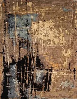 an abstract painting with blue, brown and white colors on the bottom half of it