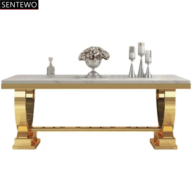 Роскошный мраморный обеденный стол SENTEWO, Набор стульев из нержавеющей стали с позолоченным основанием, домашняя мебель, стол, новый стол